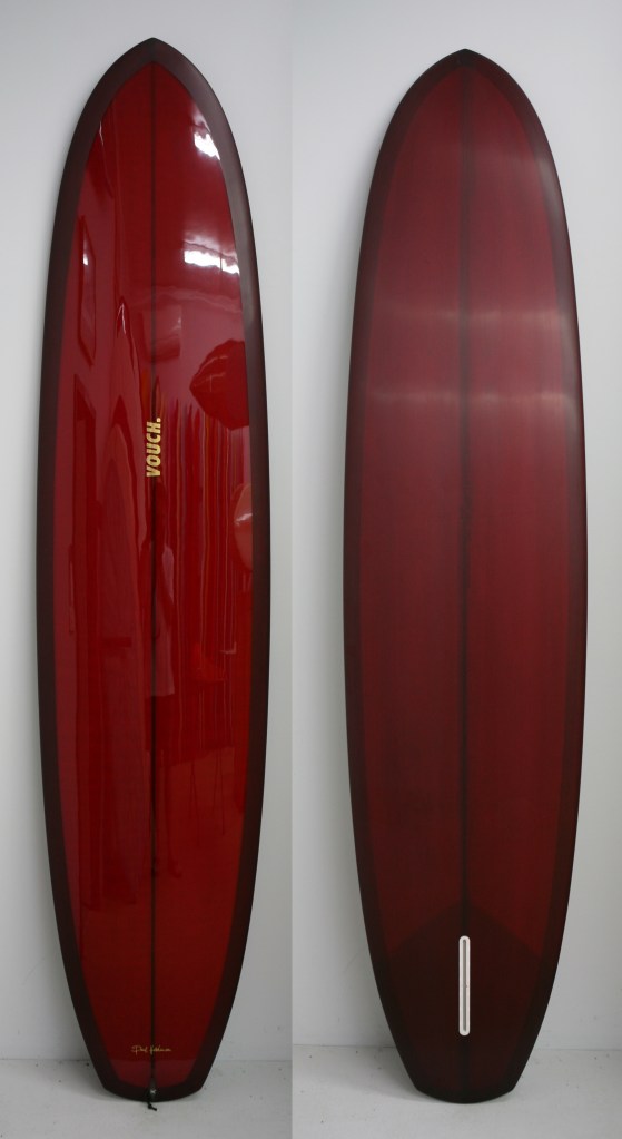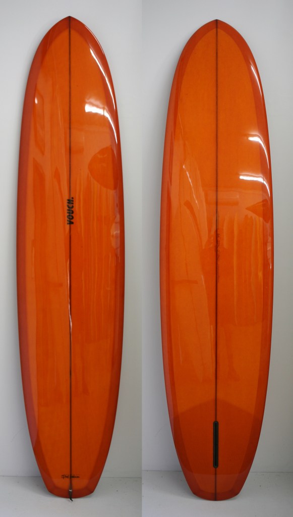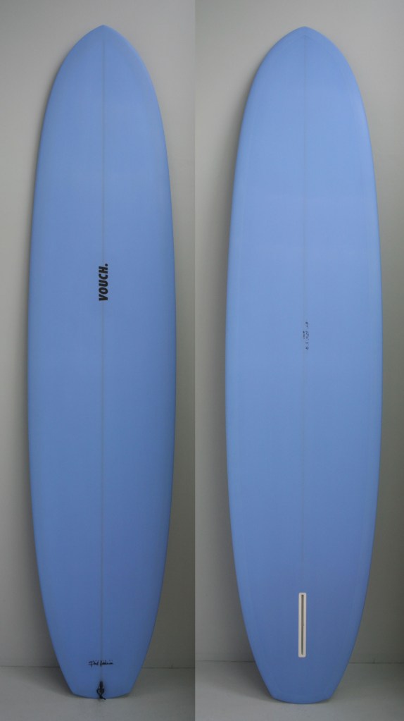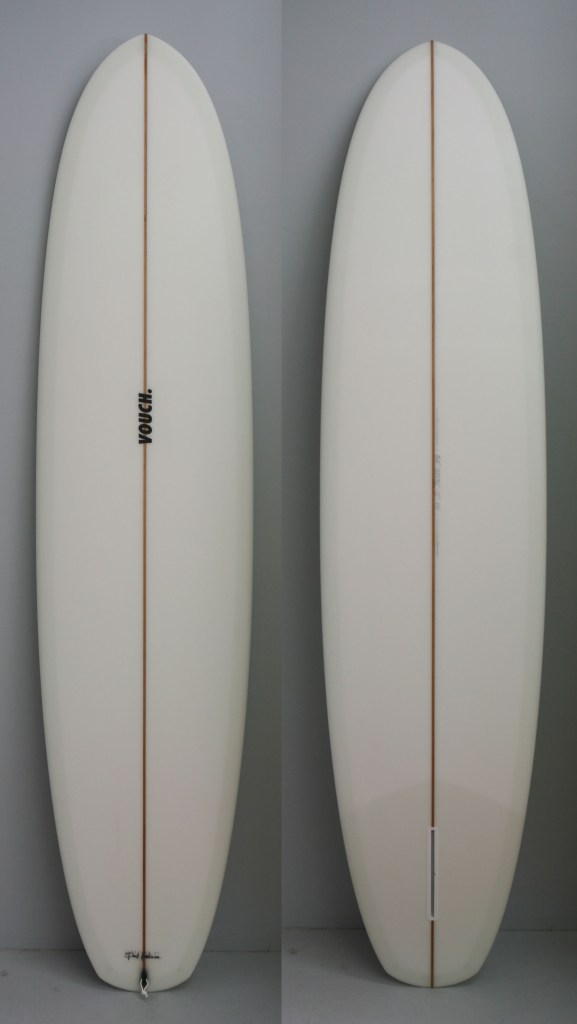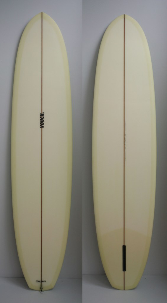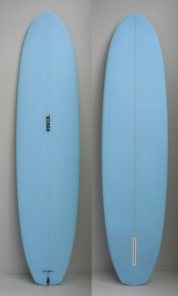 Originally made to ride as an alternative to clunky 9 footers, we based this around McTavish’s boards in Hot Generation. Paul always hated flat panel Vee’s as they were too tracky. So we took the flat panel away and replaced it will a rolled Vee. This roll continues all the way through the board and helps with getting the board on rail where it loves to be surfed from, rather than pivoted from the tail.
